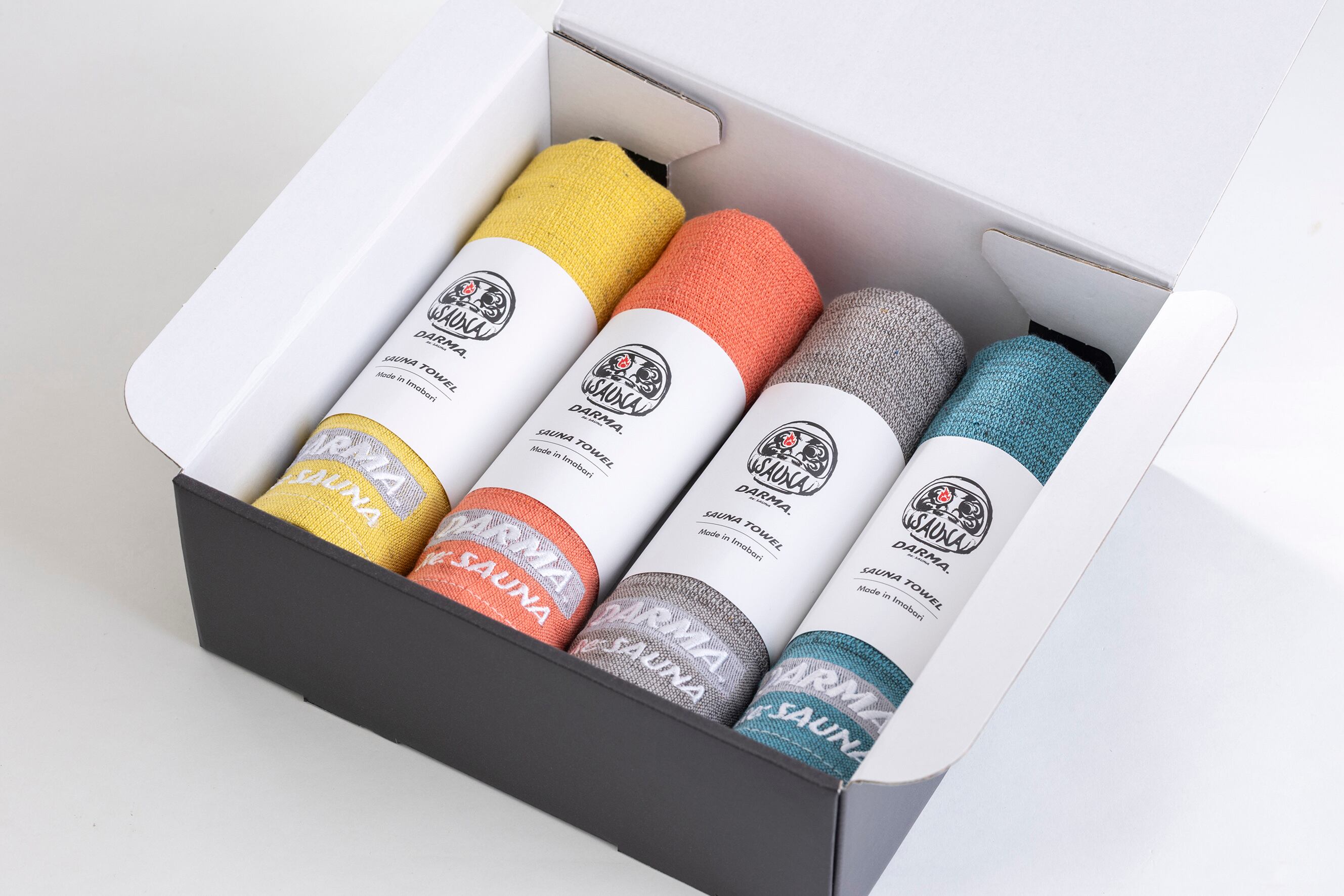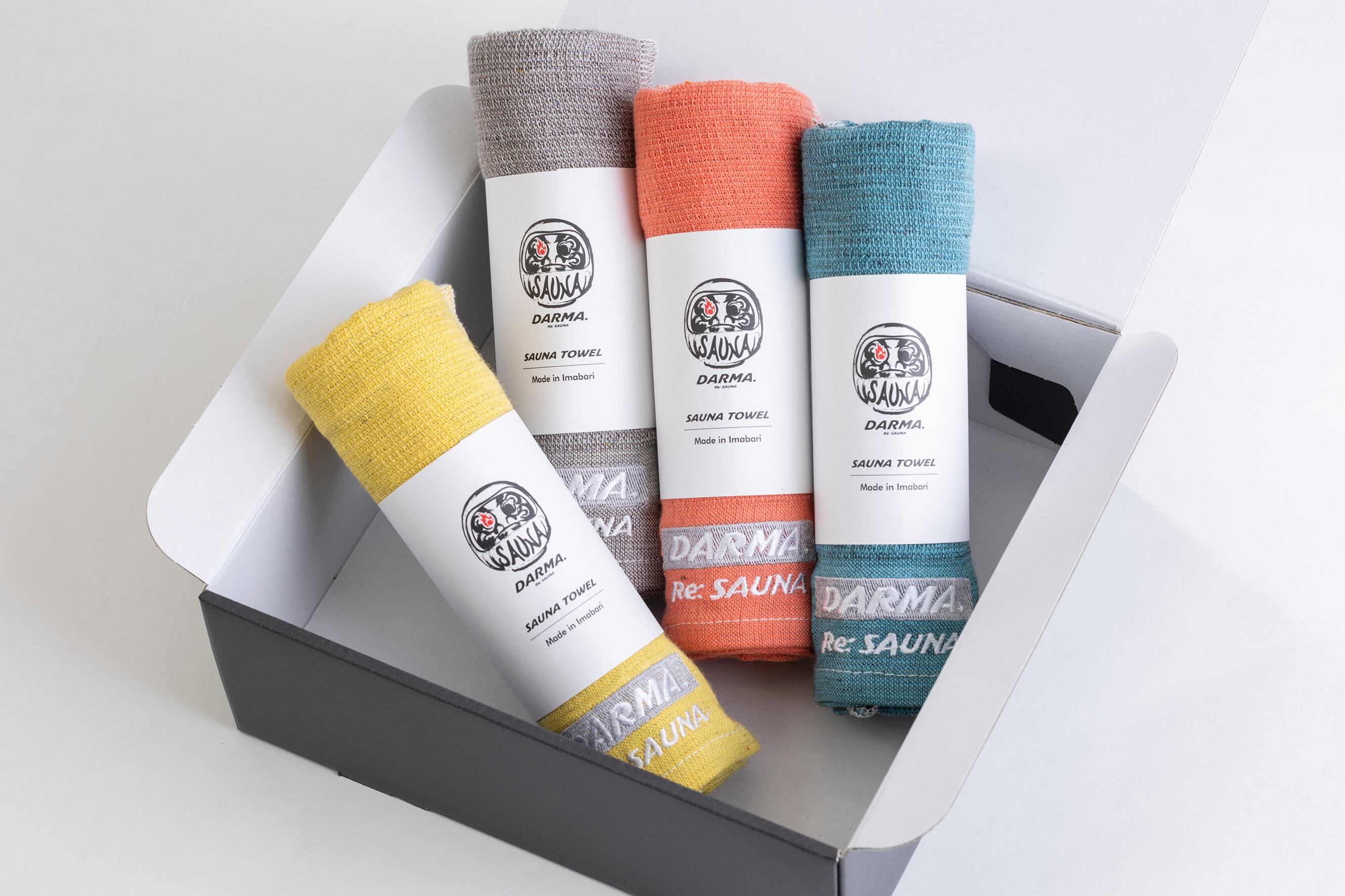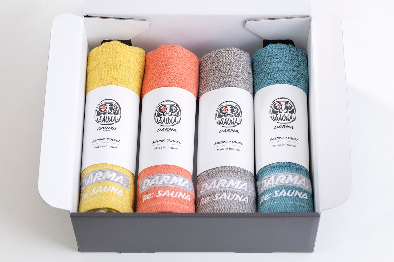 DARMA.オリジナルの今治産サウナタオル4本のギフトセット。